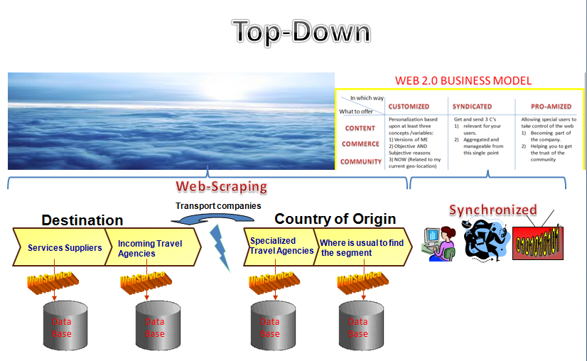 We can find a good definition of Web Scraping here. It provides very interesting features from Touristology’s point of view. Not only to get information from external websites (which have a lot of debate over whether it is legal or not) but also to train a machine to do things on behalf of a tourist. When you mix this idea with mobile devices. As I wrote in this post