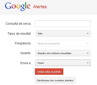 Alerts és un servei gratuït on Google ens proporciona cerques de tota publicació apareguda a Internet que reculli els termes de recerca del nostre interès.
