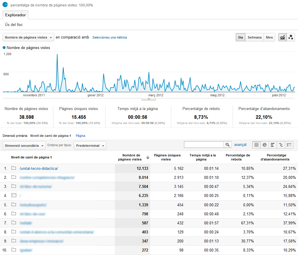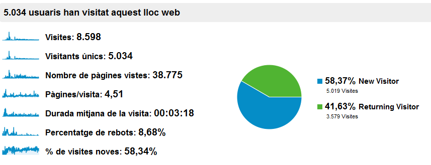 Des de llavors fins avui, el conjunt de blocs del Tecnocampus ha rebut 8.600 visites de més de 5.000 visitants únics. Concretament, si ens centrem amb el bloc de la UTD, les 55 entrades que hem fet des de la seva inauguració, han representat més de 12.133 pàgines vistes i un temps mitjà per visita de 1’14 minuts.